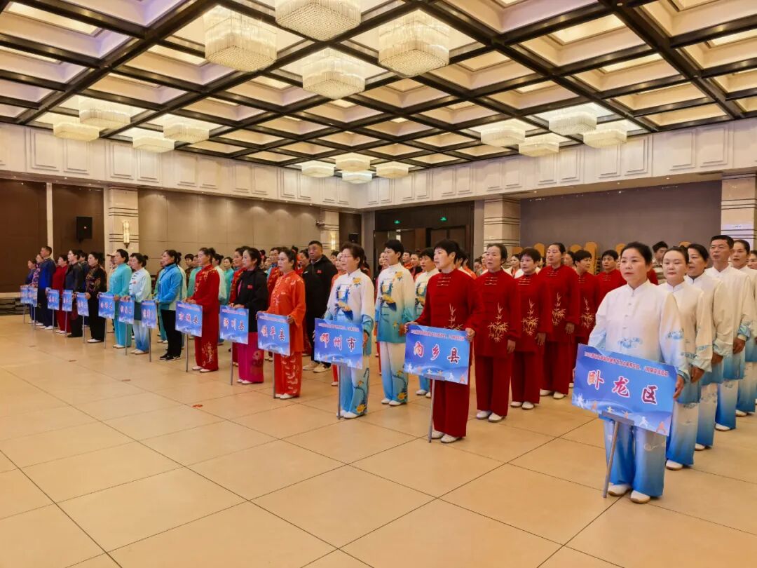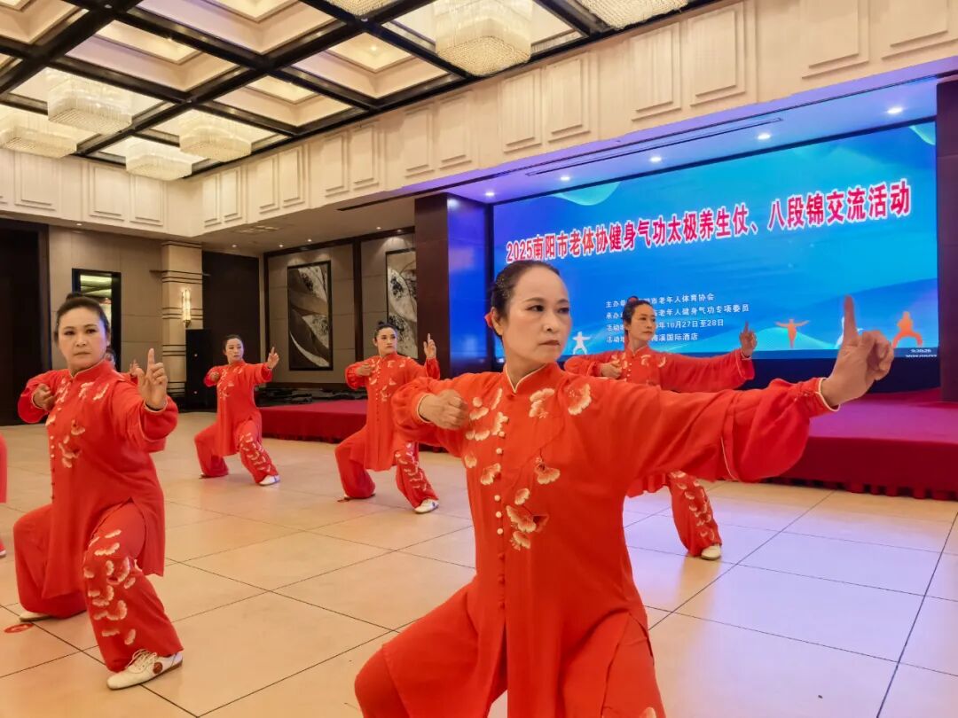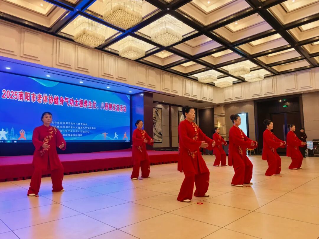 10月27日,2025南阳市老年人健身气功太极养生杖、八段锦交流活动在梅溪国际酒店举行,来自全市各县(市、区)14支代表队100余名健身气功爱好者,通过交流活动,进一步普及、推广、提升我市老年人健身气功功法水平。市老年体协副主席黄华、秘书长王玉梅,市老年体协健身气功专委会主任党红、秘书长王惠出席活动开幕式。